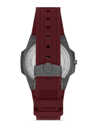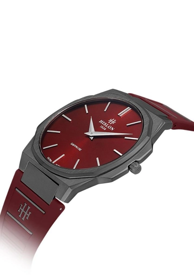 Hislon CL127T-14KN Safir Çizilmez Cam İnce Tasarım Silikon Kordon Kırmızı Renk Erkek Kol Saati