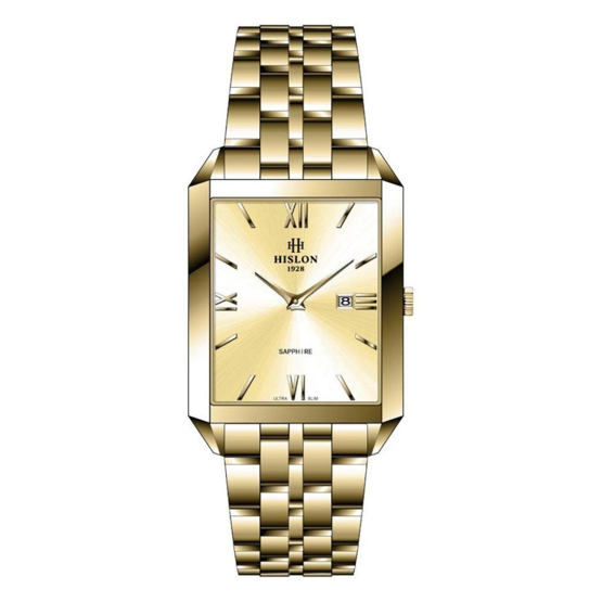 Hislon CL150G-08SG Takvimli Çelik Kordon Dikdörtgen Kadran 3 ATM Suya Dayanıklı Altın Renk Erkek Kol Saati