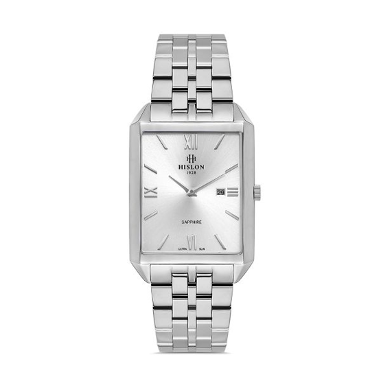 Hislon CL150S-02SS Safir Camlı Dikdörtgen Kadran Çelik Kordon Çelik Kasa 3 ATM Suya Dayanıklı Metalik Renk Erkek Kol Saati