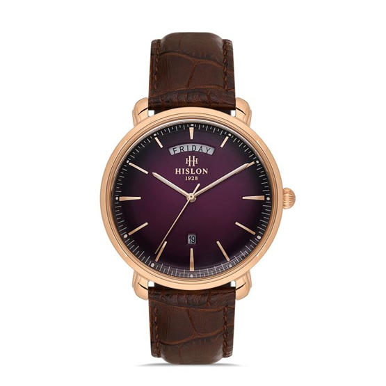Hislon CL203R-06KR Gün Göstergeli Takvimli Safir Çizilmez Cam Kahverengi Erkek Kol Saati Çok Renkli