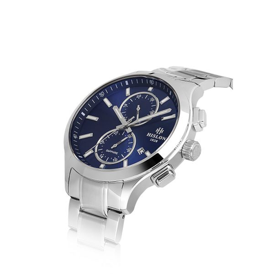 Hislon DT158S-11SS Safir Camlı Çelik Kordon Çelik Kasa 10 ATM Suya Dayanıklı Metalik Renk Erkek Kol Saati Çok Renkli