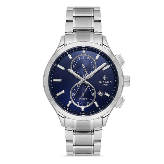 Hislon DT158S-11SS Safir Camlı Çelik Kordon Çelik Kasa 10 ATM Suya Dayanıklı Metalik Renk Erkek Kol Saati