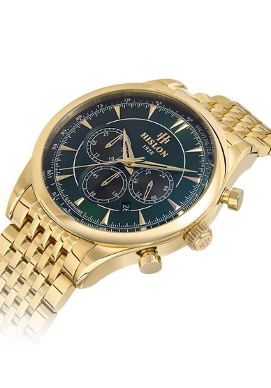 Hislon MS101G-15SG Fonksiyonlar Aktif Çelik Kordon Altın Erkek Kol Saati