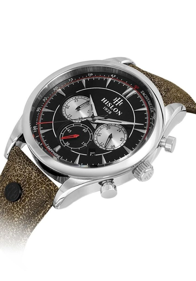 Hislon MS101S-04KS Eskitme Deri Kordon Fonksiyonlar Aktif Kahverengi Erkek Kol Saati