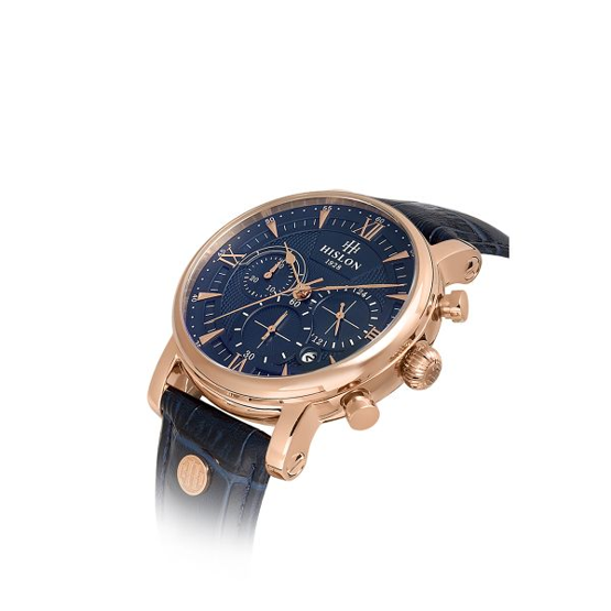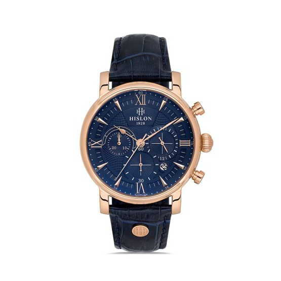 Hislon MS105R-11MR Tüm Fonksiyonları Aktif Safir Çizilmez Camlı 5 ATM Suya Dayanıklı Deri Kordonlu Lacivert Erkek Kol Saati