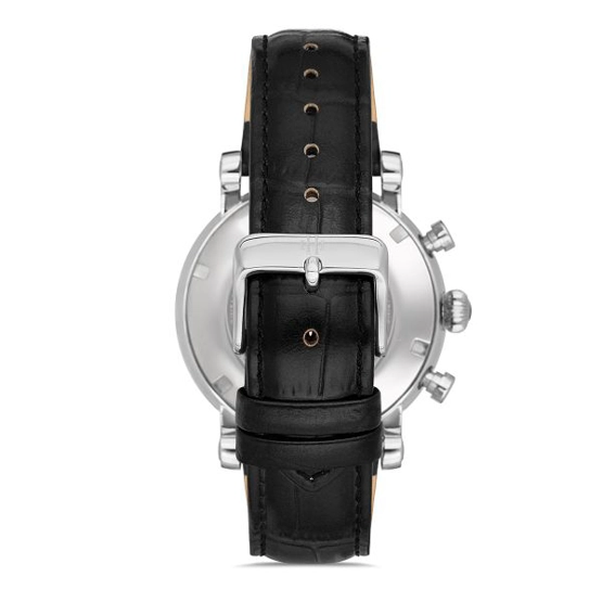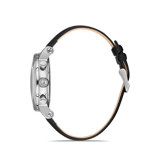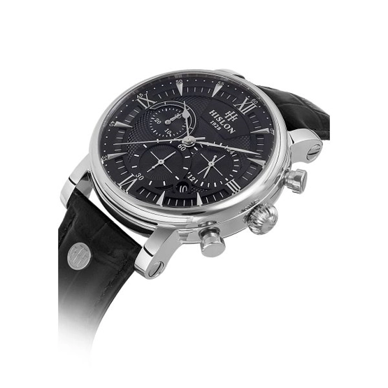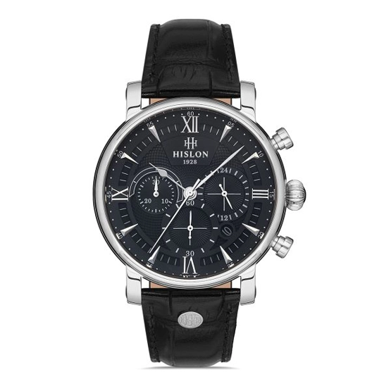 Hislon MS105S-04BS Tüm Fonksiyonları Aktif Safir Çizilmez Camlı 5 ATM Suya Dayanıklı Deri Kordonlu Siyah Erkek Kol Saati