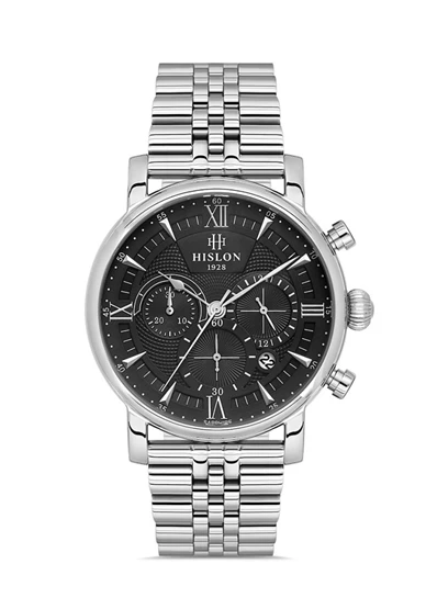 Hislon MS105S-04SB Tüm Fonksiyonları Aktif Safir Çizilmez Camlı 5 ATM Suya Dayanıklı Çelik Kordonlu Metalik Renk Erkek Kol Saati Çok Renkli