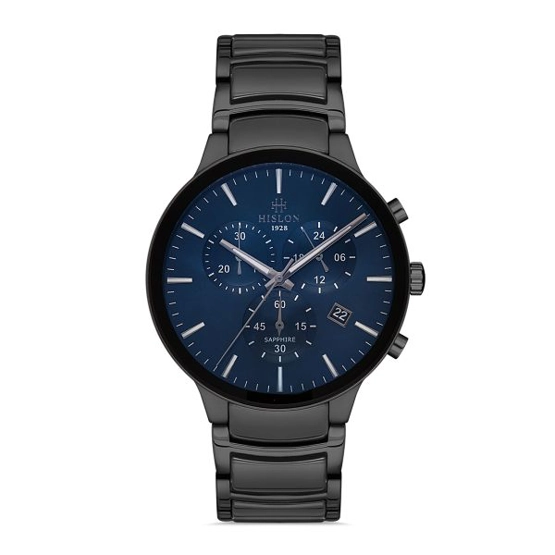 Hislon MS110T-11SN Tüm Fonksiyonları Aktif Çizilmez Safir Camlı Çelik Kordon Siyah Erkek Kol Saati
