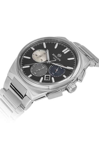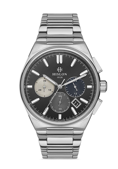 Hislon MS136S-04SB Yansıma Önleyici Safir Camlı Çelik Kordon Çelik Kasa 5 ATM Suya Dayanıklı Metalik Renk Erkek Kol Saati