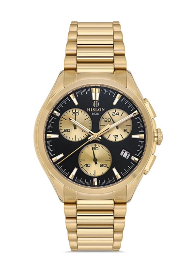 Hislon MS152G-04SG Yansıma Önleyici Safir Kaplama Cam Çelik Kordon Çelik Kasa 10 ATM Suya Dayanıklı Altın Renk Erkek Kol Saati