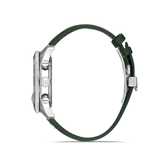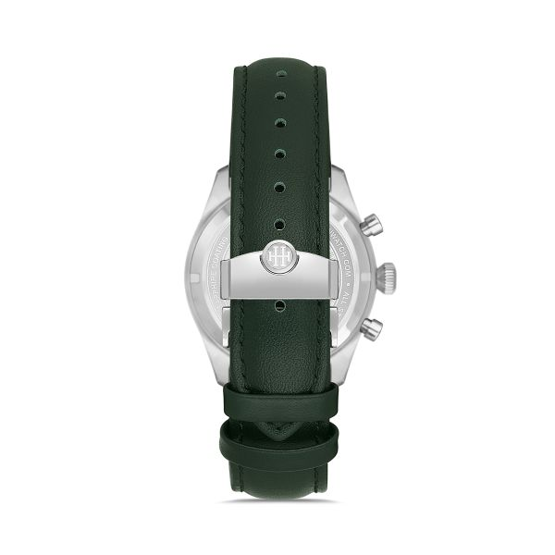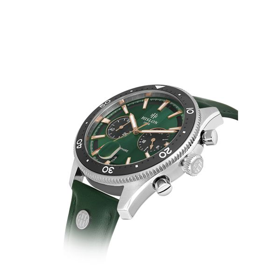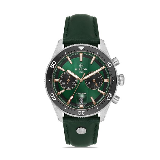 Hislon MS154T-15YR Yansıma Önleyici Seramik Çerçeve Safir Camlı Deri Kordon Çelik Kasa 10 ATM Suya Dayanıklı Yeşil Renk Erkek Kol Saati