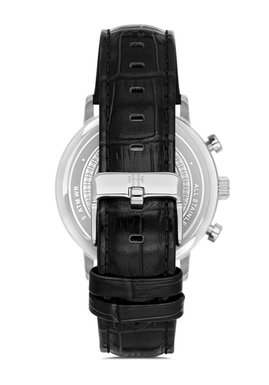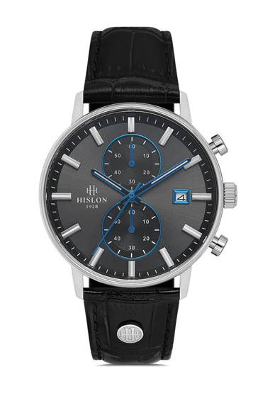 Hislon MS200S-04BS Deri Kordon Çelik Kasa 5 ATM Suya Dayanıklı Siyah Renk Erkek Kol Saati