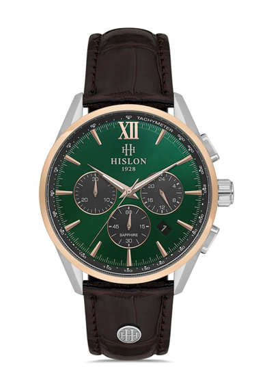 Hislon MS206T-15KR Fonksiyonlar Aktif Deri Kordon 5 Atm Suya Dayanıklı Kahverengi Erkek Kol Saati Çok Renkli