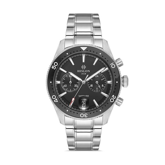 Hislon MT154T-04SB Seramik Çerçeve Yansıma Önleyici Safir Camlı Çelik Kordon Çelik Kasa 10 ATM Suya Dayanıklı Metalik Renk Erkek Kol Saati