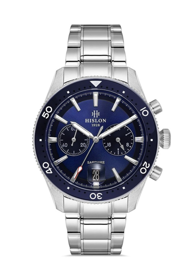 Hislon MT154T-11SS Seramik Çerçeve Yansıma Önleyici Safir Camlı Çelik Kordon Çelik Kasa 10 ATM Suya Dayanıklı Metalik Renk Erkek Kol Saati