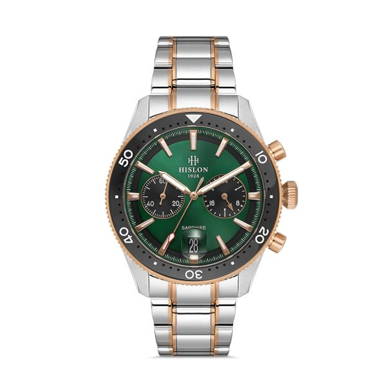 Hislon MT154T-15SR Seramik Çerçeve Yansıma Önleyici Safir Camlı Çelik Kordon Çelik Kasa 10 ATM Suya Dayanıklı Metalik-Rose Renk Erkek Kol Saati