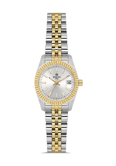 Hislon QL155T-02SG Safir Camlı Çelik Kordon Çelik Kasa 5 ATM Suya Dayanıklı Metalik-Altın Renk Kadın Kol Saati