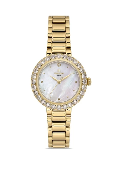 Hislon QL162G-09SG Sedef Kadranlı Çelik Kordon Çelik Kasa 3 ATM Suya Dayanıklı Altın Renk Kadın Kol Saati
