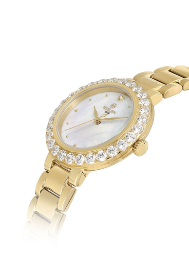 Hislon QL162G-09SG Sedef Kadranlı Çelik Kordon Çelik Kasa 3 ATM Suya Dayanıklı Altın Renk Kadın Kol Saati