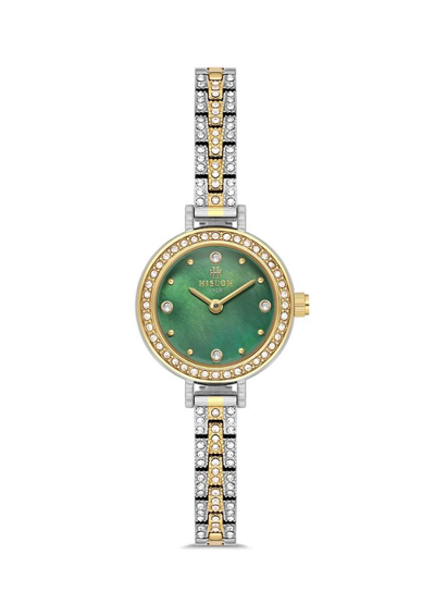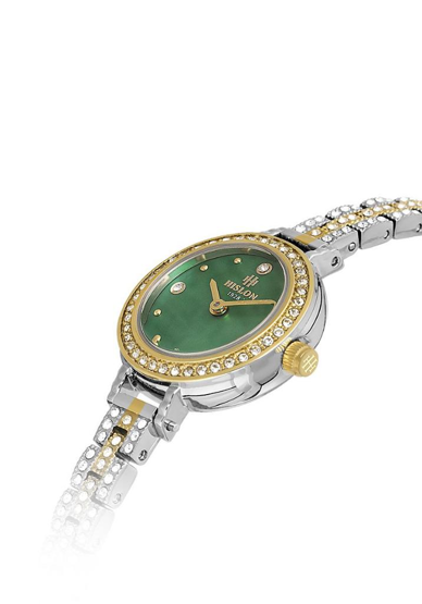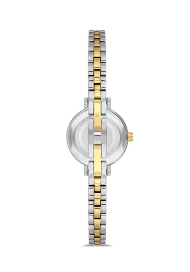 Hislon QL180T-15SG Safir Camlı Taşlı Tasarım Çelik Kordon Çelik Kasa 3 ATM Suya Dayanıklı Metalik-Altın Renk Kadın Kol Saati Çok Renkli