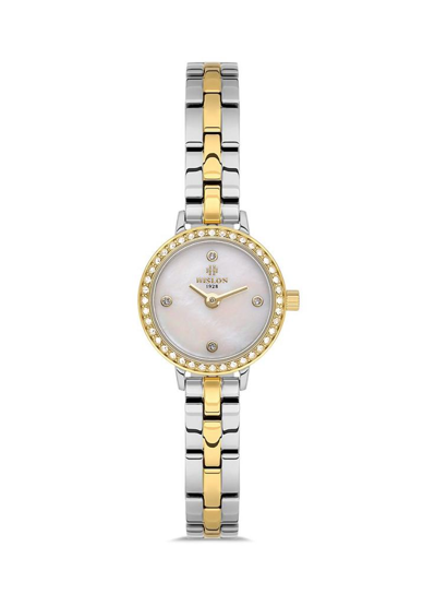 Hislon QL182T-09SG Safir Camlı Taşlı Tasarım Çelik Kordon Çelik Kasa 3 ATM Suya Dayanıklı Metalik-Altın Renk Kadın Kol Saati