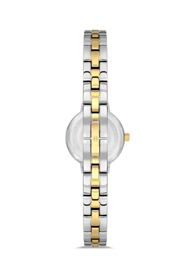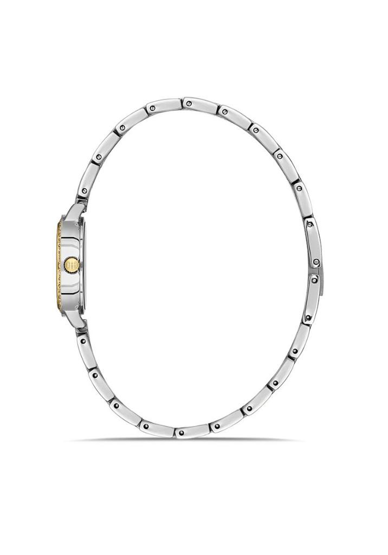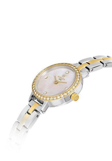 Hislon QL182T-09SG Safir Camlı Taşlı Tasarım Çelik Kordon Çelik Kasa 3 ATM Suya Dayanıklı Metalik-Altın Renk Kadın Kol Saati Çok Renkli