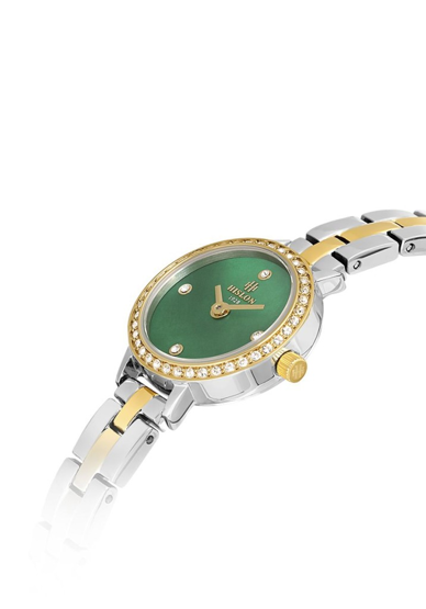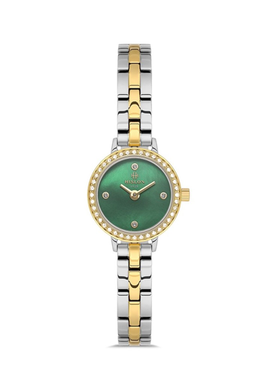 Hislon QL182T-15SG Taşlı Minimal Tasarım Safir Çizilmez Cam Metalik-Altın Renk Kadın Kol Saati Çok Renkli