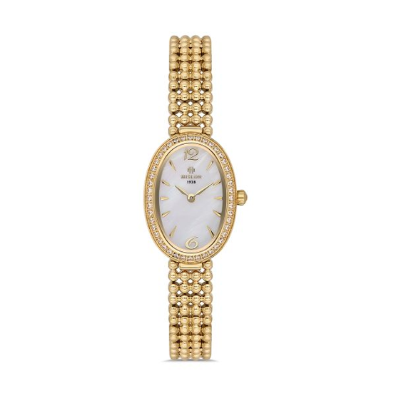 Hislon QL185G-09SG Taşlı Tasarım Oval Kadran Çelik Kordon Çelik Kasa 3 ATM Suya Dayanıklı Altın Renk Kadın Kol Saati