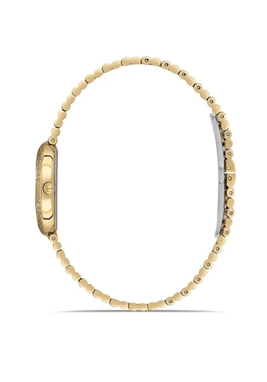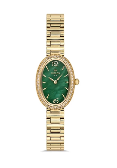 Hislon QL186G-15SG Taşlı Tasarım Oval Kadranlı Çelik Kordon Çelik Kasa 3 ATM Suya Dayanıklı Altın Renk Kadın Kol Saati