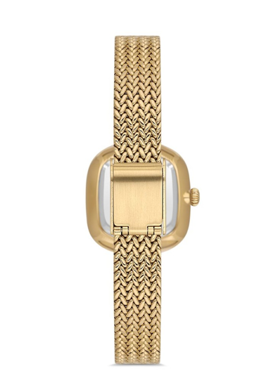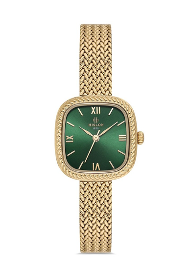 Hislon QL189G-15SG Kare Kadran Hasır Kordon 3 Atm Suya Dayanıklı Altın Renk Kadın Kol Saati