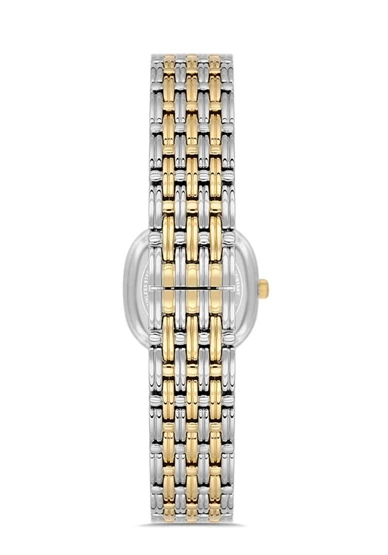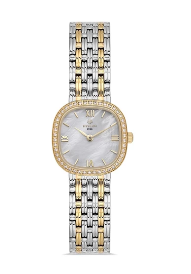 Hislon QL190T-09SG Taşlı Tasarım Sedefli Kare Kadranlı Çelik Kordon Çelik Kasa 3 ATM Suya Dayanıklı Metalik-Altın Renk Kadın Kol Saati