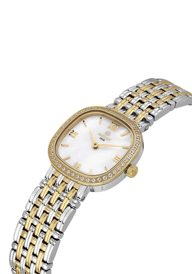 Hislon QL190T-09SG Taşlı Tasarım Sedefli Kare Kadranlı Çelik Kordon Çelik Kasa 3 ATM Suya Dayanıklı Metalik-Altın Renk Kadın Kol Saati