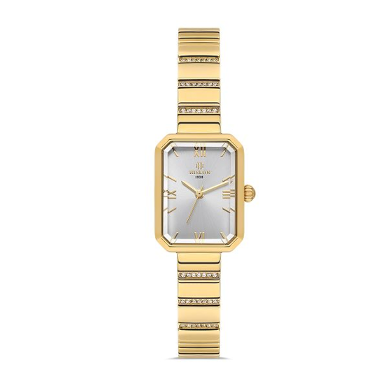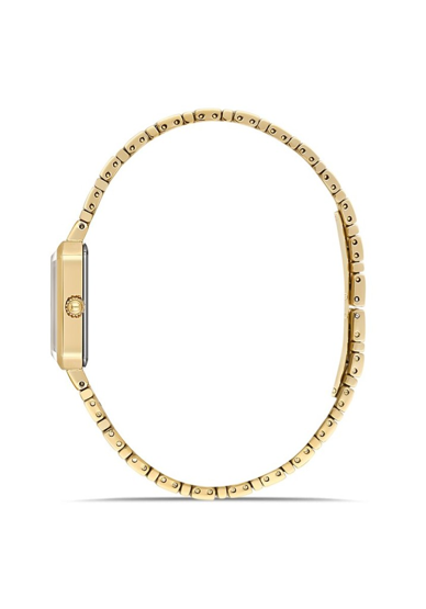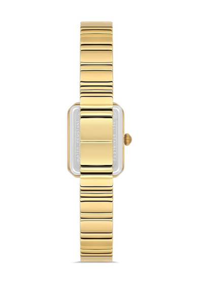 Hislon QL191G-02SG Taşlı Tasarım Dikdörtgen Kadranlı Çelik Kordon Çelik Kasa 3 ATM Suya Dayanıklı Altın Renk Kadın Kol Saati