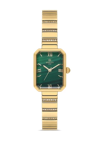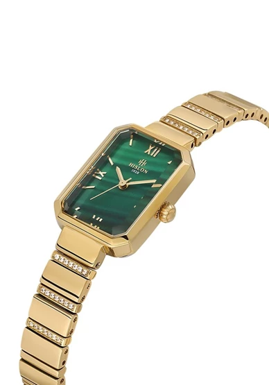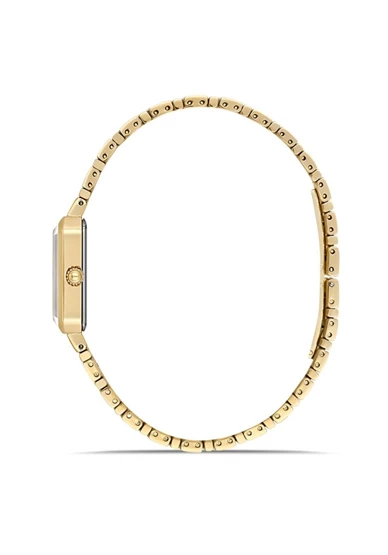 Hislon QL191G-15SG Taşlı Tasarım Dikdörtgen Kadranlı Çelik Kordon Çelik Kasa 3 ATM Suya Dayanıklı Altın Renk Kadın Kol Saati