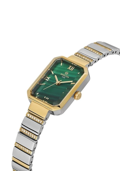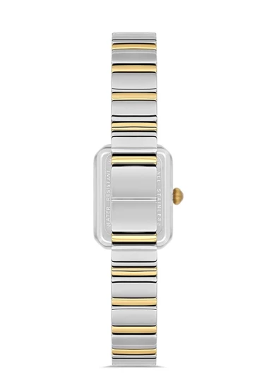Hislon QL191T-15SG Taşlı Tasarım Dikdörtgen Kadranlı Çelik Kordon Çelik Kasa 3 ATM Suya Dayanıklı Metalik-Altın Renk Kadın Kol Saati Çok Renkli