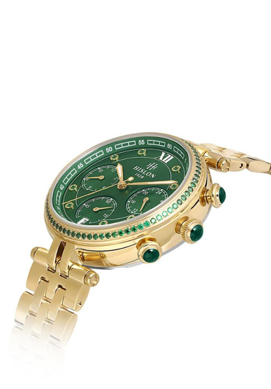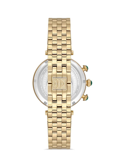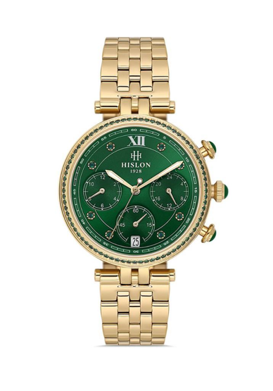 Hislon QT144G-15SG Tüm Fonksiyonları Aktif Safir Camlı Çelik Kordon Çelik Kasa 5 ATM Suya Dayanıklı Altın Renk Kadın Kol Saati Çok Renkli