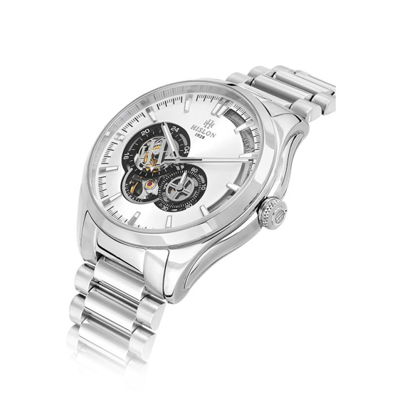 Hislon SD152S-16SS Yansıma Önleyici Otomatik Mekanizmalı Safir Camlı Çelik Kordon Çelik Kasa 10 ATM Suya Dayanıklı Metalik Renk Erkek Kol Saati