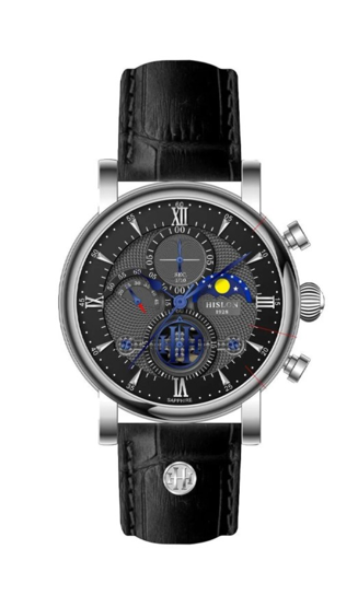 Hislon TM105S-04BS Yansıma Önleyici Safir Camlı Deri Kordon Çelik Kasa 5 ATM Suya Dayanıklı Siyah Renk Erkek Kol Saati