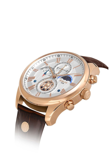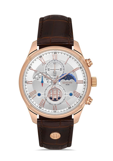 Hislon TM113R-02KR Tüm Fonksiyonları Aktif Safir Çizilmez Camlı 5 ATM Suya Dayanıklı Deri Kordonlu Kahverengi Erkek Kol Saati Çok Renkli