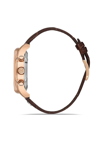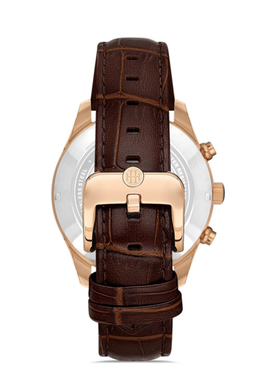 Hislon TM113R-02KR Yansıma Önleyici Safir Camlı Deri Kordon Çelik Kasa 10 ATM Suya Dayanıklı Kahverengi Renk Erkek Kol Saati