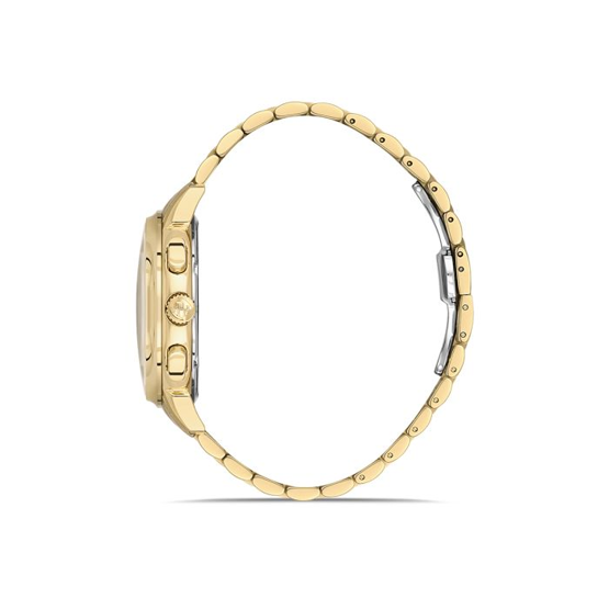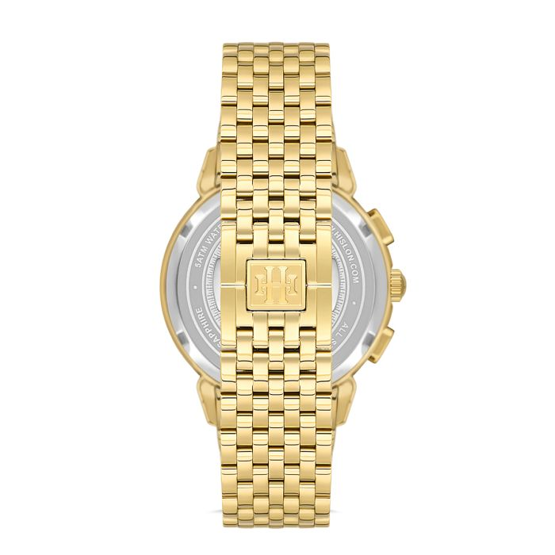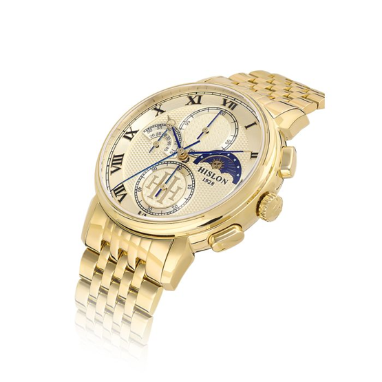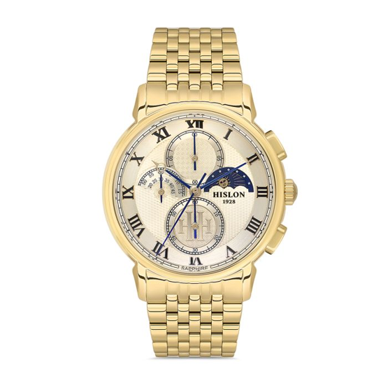 Hislon TM143G-02SG Gece Gündüz Göstergeli Safir Camlı Çelik Kordon Çelik Kasa 5 ATM Suya Dayanıklı Altın Renk Erkek Kol Saati