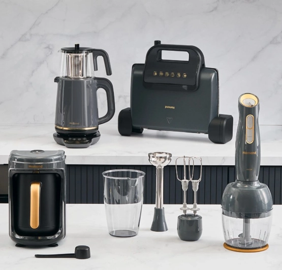 Homend 4'lü Elektrikli Çeyiz Seti Tost, Kahve, Çay Makinesi ve Blender Seti Antrasit