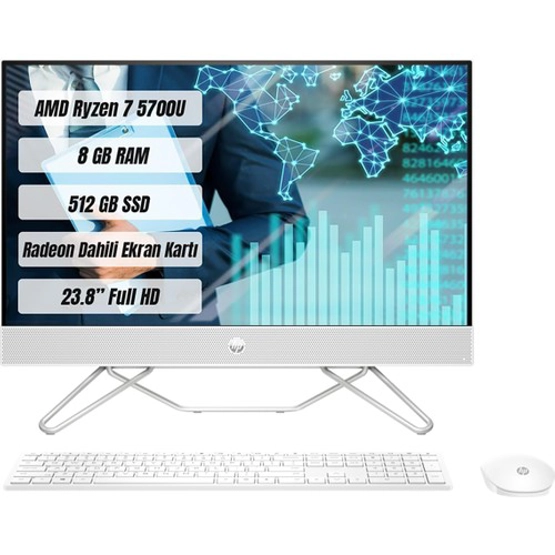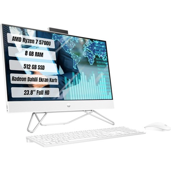 Hp 24-CB0002NT Amd Ryzen 7 5700U 8 GB 512 GB SSD 23.8" Fhd Freedos All In One 5A9B7EA Yok