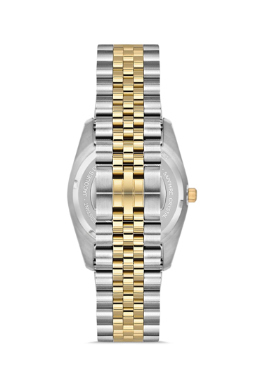 Kasa Çapı: 34 mm - Kasa Şekli: Yuvarlak - Kasa Materyali: Çelik - Kasa Rengi: Metalik Gri/Altın Rengi - Kordon Materyali: Çelik - Kordon Rengi: Metalik Gri/Altın Rengi- Kadran Rengi: Gümüş - Kadran Işığı: Yok - Taş: Var - Çalışma Şekli: Analog - Teknolojisi: Otomatik - Takvim: Var - Kronometre: Yok - Alarm: Yok - Cam Özelliği: Safir - Özellik: Sellita SW100 Mekanizmalı Swiss Made - Su Geçirmezlik: 5 ATM - Garanti Süresi: 2 YIL - Cinsiyet: Kadın