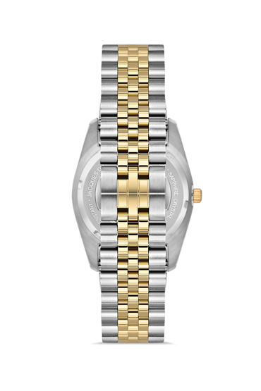 Kasa Çapı: 34 mm - Kasa Şekli: Yuvarlak - Kasa Materyali: Çelik - Kasa Rengi: Metalik Gri/Altın Rengi - Kordon Materyali: Çelik - Kordon Rengi: Metalik Gri/Altın Rengi- Kadran Rengi: Şampanya - Kadran Işığı: Yok - Taş: Var - Çalışma Şekli: Analog - Teknolojisi: Otomatik - Takvim: Var - Kronometre: Yok - Alarm: Yok - Cam Özelliği: Safir - Özellik: Sellita SW100 Mekanizmalı Swiss Made - Su Geçirmezlik: 5 ATM - Garanti Süresi: 2 YIL - Cinsiyet: Kadın