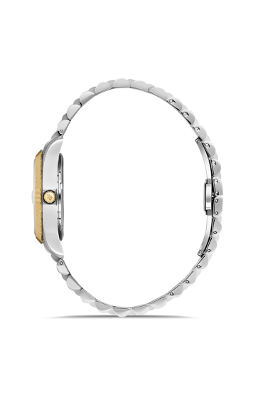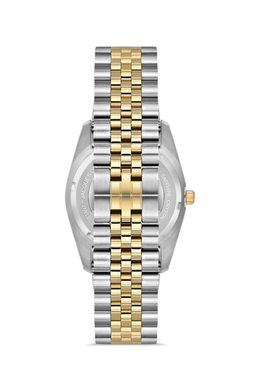 Kasa Çapı: 34 mm - Kasa Şekli: Yuvarlak - Kasa Materyali: Çelik - Kasa Rengi: Metalik Gri/Altın Rengi - Kordon Materyali: Çelik - Kordon Rengi: Metalik Gri/Altın Rengi- Kadran Rengi: Siyah - Kadran Işığı: Yok - Taş: Var - Çalışma Şekli: Analog - Teknolojisi: Otomatik - Takvim: Var - Kronometre: Yok - Alarm: Yok - Cam Özelliği: Safir - Özellik: Sellita SW100 Mekanizmalı Swiss Made - Su Geçirmezlik: 5 ATM - Garanti Süresi: 2 YIL - Cinsiyet: Kadın