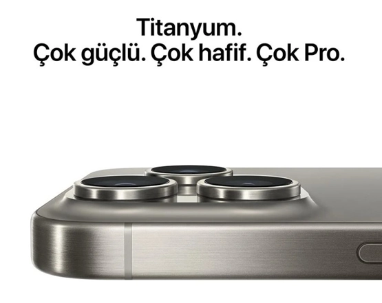 Renk Seçenekleri • Siyah Titanyum • Beyaz Titanyum • Mavi Titanyum • Natürel Titanyum Titanyum tasarım, Ceramic Shield ön yüzey, Dokulu mat cam arka yüzey Kapasite1 • 128 GB • 256 GB • 512 GB • 1 TB Boyut ve Ağırlık2 • Genişlik: 70,6 mm • Uzunluk: 146,6 mm • Derinlik: 8,25 mm • Ağırlık: 187 gram Ekran • Super Retina XDR ekran • 6.1 inç (diyagonal) tam ekran OLED • 460 ppi yoğunlukta 2556 x 1179 piksel çözünürlük • Dynamic Island • Hep Açık ekran • 120 Hz’e kadar uyarlanabilir yenileme hızına sahip ProMotion teknolojisi • HDR ekran • True Tone • Geniş renk yelpazesi (P3) • Haptic Touch • 2.000.000:1 kontrast oranı (tipik) • 1000 nit maksimum ekran parlaklığı (tipik); 1600 nit maksimum piksel parlaklığı (HDR); 2000 nit maksimum piksel parlaklığı (açık hava) • Parmak izine dayanıklı, yağ tutmayan kaplama • Birden fazla dil ve karakteri aynı anda görüntüleme desteği iPhone15 Pro’nun ekranı yuvarlatılmış köşelere sahiptir. Telefonun kıvrımlı, zarif tasarımını takip eden bu köşeler standart bir dikdörtgenin sınırları içinde yer alır. Standart bir dikdörtgen olarak ölçüldüğünde ekran diyagonal olarak 6.12 inçtir (görüntülenebilen gerçek alan daha azdır). Suya, Sıçramalara ve Toza Dayanıklılık3 60529 sayılı IEC standardı kapsamında IP68 derecesi (30 dakikaya kadar maksimum 6 metre derinlik) Çip • A17 Pro çip • 2 adet performans çekirdeğine ve 4 adet verimlilik çekirdeğine sahip yeni 6 çekirdekli CPU • Yeni 6 çekirdekli GPU • Yeni 16 çekirdekli Neural Engine Apple Intelligence iPhone’unuzda yerleşik olarak bulunan Apple Intelligence yazmanıza, kendinizi ifade etmenize ve işlerinizi kolayca halletmenize yardımcı oluyor. Olağanüstü gizlilik korumaları sayesinde Apple dahil sizden başka kimsenin verilerinize erişemeyeceğinin rahatlığını yaşayabiliyorsunuz.27 Apple Intelligence hakkında daha fazla bilgi edinin Kamera Pro kamera sistemi • 48 MP Ana kamera: 24 mm, ƒ/1.78 diyafram, ikinci nesil sensör bazlı optik görüntü stabilizasyonu, %100 Focus Pixels, süper yüksek çözünürlüklü fotoğraflar (24 MP ve 48 MP) • 12 MP Ultra Geniş kamera: 13 mm, ƒ/2.2 diyafram ve 120° görüş alanı, %100 Focus Pixels • 12 MP 2 kat Telefoto (dört pikselli sensör aracılığıyla): 48 mm, ƒ/1.78 diyafram, ikinci nesil sensör bazlı optik görüntü stabilizasyonu, %100 Focus Pixels • 12 MP 3 kat Telefoto: 77 mm, ƒ/2.8 diyafram, optik görüntü stabilizasyonu • 3 kat optik yakınlaştırma, 2 kat optik uzaklaştırma; 6 kat optik zoom aralığı • 15 kata kadar dijital zoom • Kişiselleştirilebilen varsayılan lens (Ana kamera) • Safir kristal lens kapağı • Adaptif True Tone Flash • Photonic Engine • Deep Fusion • Akıllı HDR 5 • Odak özelliğine ve Derinlik Denetimi’ne sahip yeni nesil portreler • Altı efektli Portre Işığı • Gece modu • LiDAR Tarayıcısı yardımıyla Gece modunda portre çekimi • Panorama (63 megapiksele kadar) • Fotoğrafik Stiller • Makro çekim • Apple ProRAW • Fotoğraflar ve Live Photo’lar için geniş renk yelpazesiyle çekim • Lens düzeltme (Ultra Geniş) • Gelişmiş kırmızı göz düzeltme • Otomatik görüntü stabilizasyonu • Seri çekim modu • Fotoğraflara konum bilgisi ekleme • Çekilebilen görüntü biçimleri: HEIF, JPEG ve DNG Video Kaydı • Saniyede 24, 25, 30 veya 60 kare 4K video kaydı • Saniyede 25, 30 veya 60 kare 1080p HD video kaydı • Saniyede 30 kare 720p HD video kaydı • Saniyede 30 kare 4K HDR çözünürlüğe kadar Sinematik mod • Saniyede 60 kare 2.8K çözünürlüğe kadar Hareket Modu • Saniyede 60 kare 4K çözünürlüğe kadar Dolby Vision HDR video kaydı • Harici kayıtla saniyede 60 kare 4K çözünürlüğe kadar ProRes video kaydı • Log video kaydı • Academy Color Encoding System • Ağır çekim ve hızlı çekim modları da dahil makro video kaydı • Saniyede 120 veya 240 kare 1080p ağır çekim video desteği • Stabilizasyon özelliğine sahip hızlı çekim video kaydı • Gece modunda hızlı çekim • QuickTake video • Videolar için ikinci nesil, sensör bazlı optik görüntü stabilizasyonu (Ana kamera) • Videolar için optik görüntü stabilizasyonu (3 kat Telefoto) • 3D sensör bazlı optik görüntü stabilizasyonu ve video için otomatik netleme (5 kat Telefoto) • 9 kata kadar dijital zoom (iPhone 15 Pro) ve 15 kata kadar dijital zoom (iPhone 15 Pro Max) • İşitsel zoom • True Tone Flash • Sinematik video stabilizasyonu (4K, 1080p ve 720p) • Kesintisiz otomatik netleme özelliğine sahip video kaydı • 4K video kaydederken 8 MP fotoğraf çekme • Videoyu oynatırken yakınlaştırma • Kaydedilebilen video biçimleri: HEVC, H.264 ve ProRes • Stereo kayıt TrueDepth Kamera • 12 MP kamera • ƒ/1.9 diyafram • Focus Pixels özelliğine sahip otomatik netleme • Retina Flash • Photonic Engine • Deep Fusion • Akıllı HDR 5 • Odak özelliğine ve Derinlik Denetimi’ne sahip yeni nesil portreler • Altı efektli Portre Işığı • Animoji ve Memoji • Gece modu • Fotoğrafik Stiller • Apple ProRAW • Fotoğraflar ve Live Photo’lar için geniş renk yelpazesiyle çekim • Lens düzeltme • Otomatik görüntü stabilizasyonu • Seri çekim modu • Saniyede 24, 25, 30 veya 60 kare 4K video kaydı • Saniyede 25, 30 veya 60 kare 1080p HD video kaydı • Saniyede 30 kare 4K HDR çözünürlüğe kadar Sinematik mod • Saniyede 60 kare 4K çözünürlüğe kadar Dolby Vision HDR video kaydı • Harici kayıtla saniyede 60 kare 4K çözünürlüğe kadar ProRes video kaydı • Log video kaydı • Academy Color Encoding System • Saniyede 120 kare 1080p ağır çekim video desteği • Stabilizasyon özelliğine sahip hızlı çekim video kaydı • Gece modunda hızlı çekim • QuickTake video • S