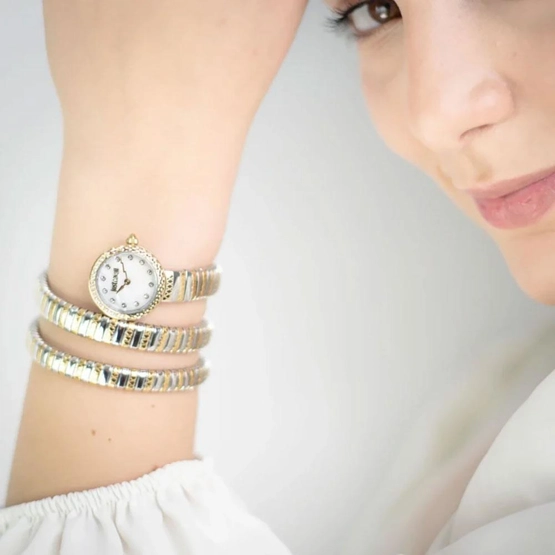 Kasa Çapı: 23 mm - Kasa Şekli: Yuvarlak - Kasa Materyali: Çelik - Kasa Rengi: Altın - Kordon Materyali: Çelik - Kordon Rengi: Altın/Gümüş- Kadran Rengi: Sedef - Kadran Işığı: Yok - Taş: Var - Çalışma Şekli: Analog - Teknolojisi: Quartz - Takvim: Yok - Kronometre: Yok - Alarm: Yok - Cam Özelliği: Mineral - Özellik: - Su Geçirmezlik: 3 ATM - Garanti Süresi: 2 YIL - Cinsiyet: Kadın