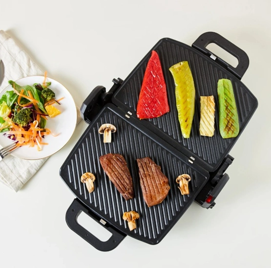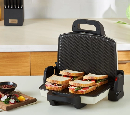 Karaca Future Essential Tost Makinesi 1800 W 1800W güce sahip Future Essential Izgara ve Tost makinesinin; 4 dilim tost kapasitesi ile ister en lezzetli tostları yapabilir isterseniz de 180 derece açılabilme özelliği ile tek hareketle kolayca ızgaraya dönüştürerek mükemmel ızgara keyfini yaşayabilirsiniz. Yanmaz yapışmaz plakaları, yerinden çıkarılıp bulaşık makinesinde yıkanabilir. 4 kademeli ısı ayarı ile istediğiniz yiyeceğe göre sıcaklık ayarı yapabilen Karaca Future Essential Izgara ve Tost Makinesi Quick Grill Teknolojisine ile plakalarının her yeri eşit olarak ısıtır. Isıya dayanıklı tutma sapları ve kısa devre koruması ile yüksek güvenlik sunarken dik konumda durabilmesi sayesinde mutfağınızda az yer kaplar. Ayarlanabilir Gövde Tostlarınızı, yumurtalı ekmeklerinizi, kalın sandviçlerinizi, beşamel soslu gratenlerinizi ve daha pek çok yiyeceği tam istediğiniz kıvamda pişirebilirsiniz. 180 Derece Açılır Plakalar 180 derece açılabilir plakalarını tek hareketle ızgaraya dönüştürülebilirsiniz. Et ve sebzelerinizi pişirirken mükemmel ızgara keyifini yaşayabilirsiniz, Ayarlanabilir Sıcaklık Tost makinenizin 4 kademeli sıcaklık ayarı sayesinde, istediğiniz yiyeceğe göre sıcaklığını ayarlayabilirsiniz. Örneğin; sadece ısıtmak istediğiniz düşük sıcaklık sayesinde enerji tüketimini azaltabilirsiniz. Ürün Teknik Özellikleri 220-240 V 50/60 Hz 1800 W gücünde Tost ve ızgara olarak kullanma 180 derece açılabilir gövde Yapışmaz ve yıkanabilir plakalar Isı ayar düğmesi ile istenilen ısıya kısa sürede ulaşma Kısa devre koruması ile yüksek güvenlik Tek seferde 4 adet tost yapabilme Isıya dayanıklı tutma sapları sayesinde güvenli kullanım Dik konumda durabilmesi sayesinde mutfağınızda az yer kaplar Quick grill teknolojisi ile plakaların her yerini eşit ısıtır 2 Yıl Garantili – Dilersiniz ek garanti seçeneklerimizden yararlanabilirsiniz, Yedek parça temini yapılmaktadır.