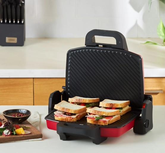 Karaca Future Essential Tost Makinesi 1800 W 1800W güce sahip Future Essential Izgara ve Tost makinesinin; 4 dilim tost kapasitesi ile ister en lezzetli tostları yapabilir isterseniz de 180 derece açılabilme özelliği ile tek hareketle kolayca ızgaraya dönüştürerek mükemmel ızgara keyfini yaşayabilirsiniz. Yanmaz yapışmaz plakaları, yerinden çıkarılıp bulaşık makinesinde yıkanabilir. 4 kademeli ısı ayarı ile istediğiniz yiyeceğe göre sıcaklık ayarı yapabilen Karaca Future Essential Izgara ve Tost Makinesi Quick Grill Teknolojisine ile plakalarının her yeri eşit olarak ısıtır. Isıya dayanıklı tutma sapları ve kısa devre koruması ile yüksek güvenlik sunarken dik konumda durabilmesi sayesinde mutfağınızda az yer kaplar. Ayarlanabilir Gövde Tostlarınızı, yumurtalı ekmeklerinizi, kalın sandviçlerinizi, beşamel soslu gratenlerinizi ve daha pek çok yiyeceği tam istediğiniz kıvamda pişirebilirsiniz. 180 Derece Açılır Plakalar 180 derece açılabilir plakalarını tek hareketle ızgaraya dönüştürülebilirsiniz. Et ve sebzelerinizi pişirirken mükemmel ızgara keyifini yaşayabilirsiniz, Ayarlanabilir Sıcaklık Tost makinenizin 4 kademeli sıcaklık ayarı sayesinde, istediğiniz yiyeceğe göre sıcaklığını ayarlayabilirsiniz. Örneğin; sadece ısıtmak istediğiniz düşük sıcaklık sayesinde enerji tüketimini azaltabilirsiniz. Ürün Teknik Özellikleri 220-240 V 50/60 Hz 1800 W gücünde Tost ve ızgara olarak kullanma 180 derece açılabilir gövde Yapışmaz ve yıkanabilir plakalar Isı ayar düğmesi ile istenilen ısıya kısa sürede ulaşma Kısa devre koruması ile yüksek güvenlik Tek seferde 4 adet tost yapabilme Isıya dayanıklı tutma sapları sayesinde güvenli kullanım Dik konumda durabilmesi sayesinde mutfağınızda az yer kaplar Quick grill teknolojisi ile plakaların her yerini eşit ısıtır 2 Yıl Garantili – Dilersiniz ek garanti seçeneklerimizden yararlanabilirsiniz, Yedek parça temini yapılmaktadır.